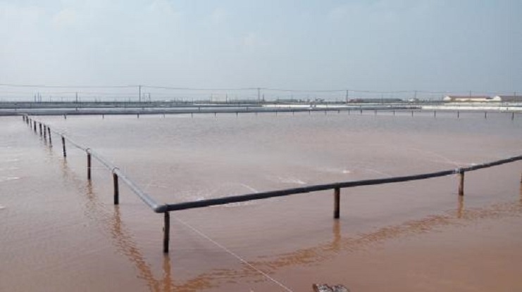 除硫是日曬制鹽制鹽工藝的特點、是原鹽質(zhì)量的根本保證,因加入鈣液量較小,和除硫鹵水均勻混合比較困難。盡管不少班組采用人工或者機械攪拌,終因洼站面積較大,始終不盡人意。最近,生產(chǎn)服務(wù)公司經(jīng)理劉文能同志帶領(lǐng)生產(chǎn)服務(wù)公司全體人員研究,最終決定采用農(nóng)田打滴灌溉原理。用塑料管圍繞洼站一圈,根據(jù)塑料管孔徑計算眼數(shù),使鈣液分布均勻加入,這樣鈣液和鹵水充分接觸,提高反應(yīng)速度,減少除硫時間,徹底解決除硫攪拌問題。(孫何瑜)