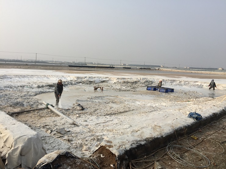 連日來的晴好天氣讓人心情舒暢,也給鹽業(yè)生產(chǎn)工作提供了有利時(shí)機(jī),新河制鹽分公司全體員工充分發(fā)揮主觀能動性,抓緊時(shí)機(jī)做好洼站硫酸鈣清除工作,保證公司冬準(zhǔn)工作順利開展,騰出洼站容積,確保除硫和儲鹵需要,截止目前新河分公司已出動三臺硫酸鈣清除機(jī)械,其中一臺小改小革除鈣機(jī)械在此次清理工作中正進(jìn)行試用和驗(yàn)證。(新河制鹽 邱利民)