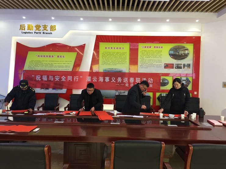 灌云海事走進(jìn)宵洋物流開展義務(wù)送春聯(lián)活動