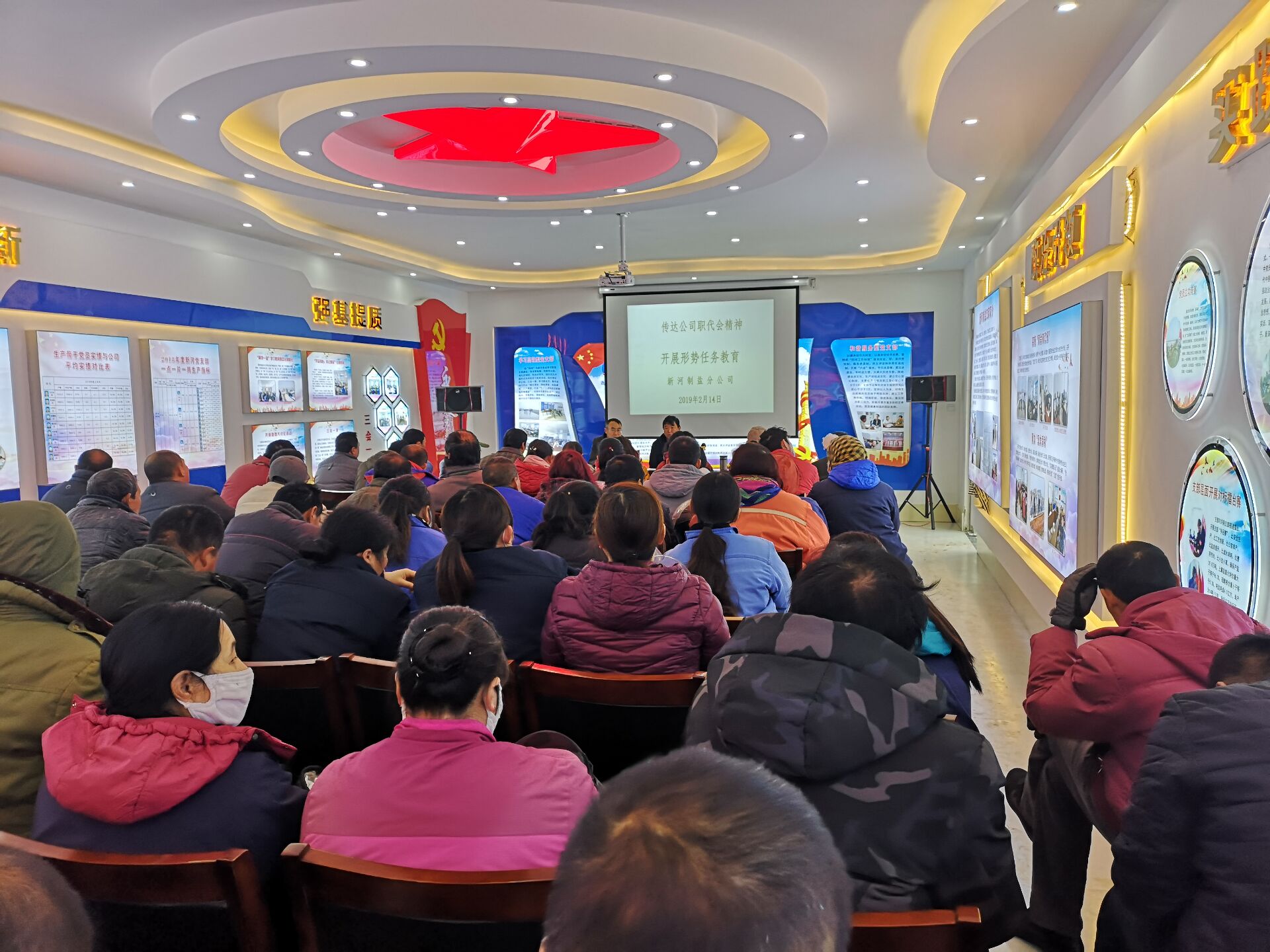 2月14日,在新河制鹽黨員活動室召開全體員工大會。共170余人參加會議,宣傳學習貫徹兩級職代會精神,讓職代會精神深入人心,會上還就班組團結、穩(wěn)定等方面從不同角度作具體分析要求。對2019年安全生產(chǎn)工作作重點規(guī)劃安排。目標已規(guī)劃,任務已明確,分解到班組,一年之計在于春,抓緊抓早抓實,保持昂揚斗志,迎難而上,大干當前,為完成全年30萬噸目標,打下堅定的基礎。(江德前)