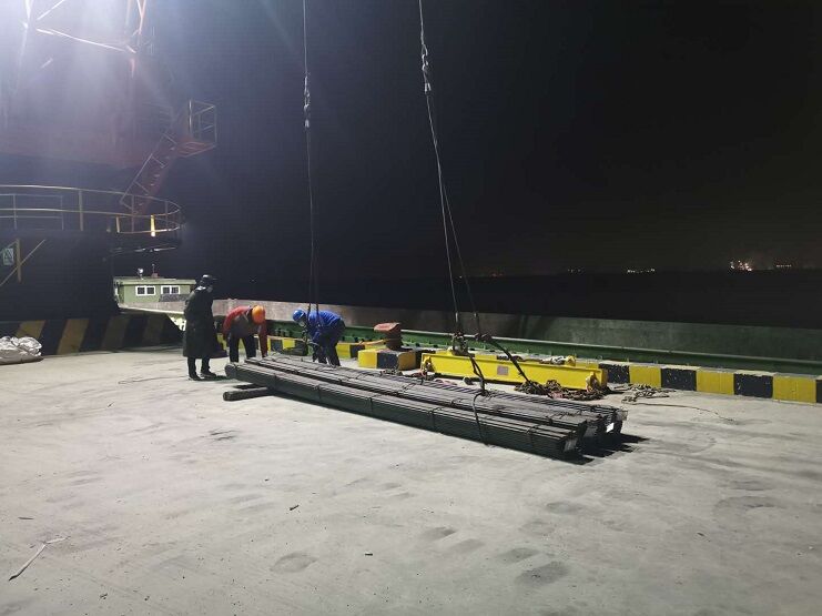 宵洋物流碼頭作為投資公司傾力打造的新興產(chǎn)業(yè),本著“服務(wù)為本”的態(tài)度努力去做好物流工作。“急客戶所急,想客戶所想”,努力提高服務(wù)質(zhì)量。近日,一批來自日照鋼鐵廠的彈簧鋼急需裝船,碼頭全體員工以輪班制確保按時(shí)裝卸貨物,加班加點(diǎn)地忙碌在碼頭上。本著“客戶至上,服務(wù)為本”的工作態(tài)度,為公司高質(zhì)展發(fā)貢獻(xiàn)自己的力量。 (靳 靜)