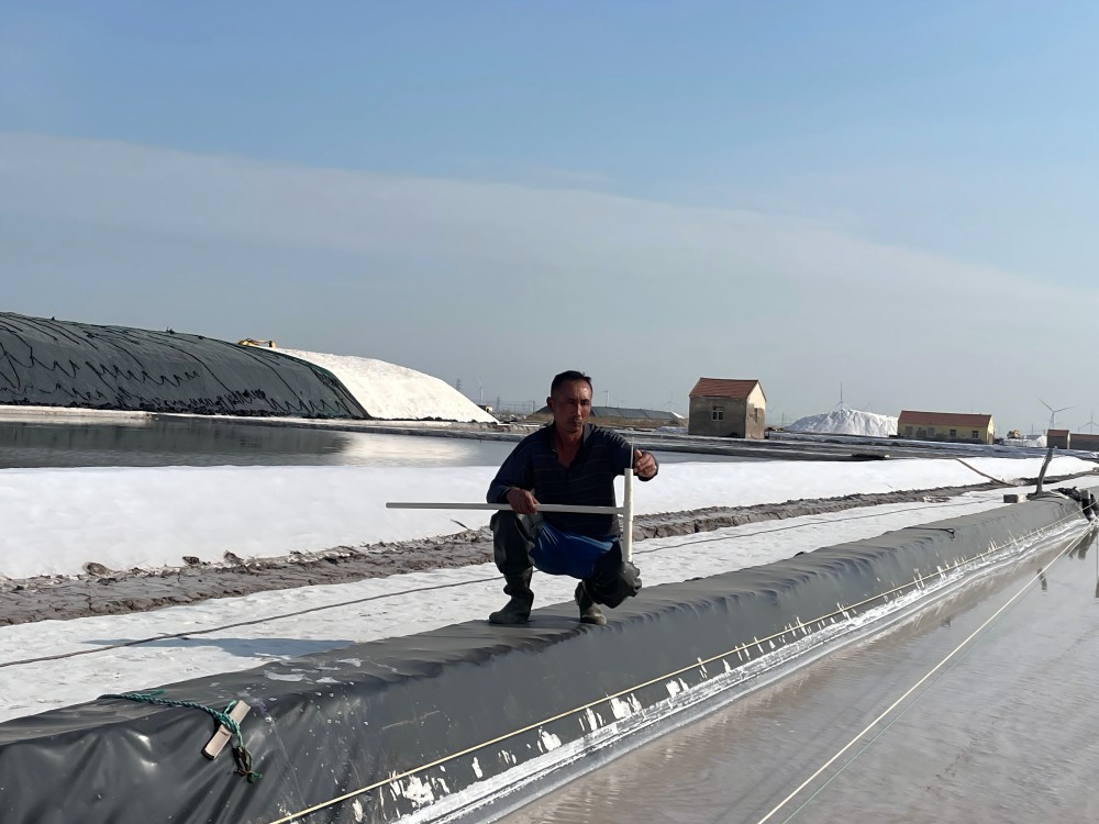 鹽工們的日常,是與陽光、礦鹵和鹽灘的對話。清晨,他們早早來到鹽灘,檢查鹵水深度和濃度,各節(jié)制、池埝是否滲漏;下午,頂著烈日觀察礦鹵蒸發(fā)狀態(tài);傍晚,仔細(xì)查看鹽粒結(jié)晶情況。遇到極端天氣,全員出動(dòng),爭分奪秒為鹽堆苫蓋防護(hù)布。“雖然辛苦,但看到像小山一樣的鹽堆,就覺得一切都值了。”年輕的鹽工小陳擦著汗笑道。