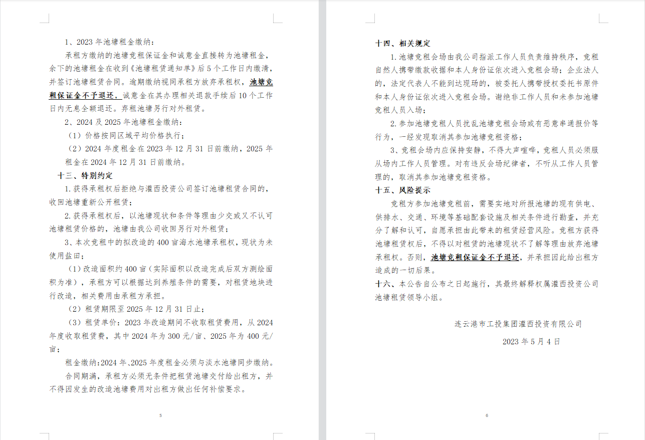連云港市工投集團(tuán)灌西投資公司2023年度淡水養(yǎng)殖池塘公開競(jìng)租公告