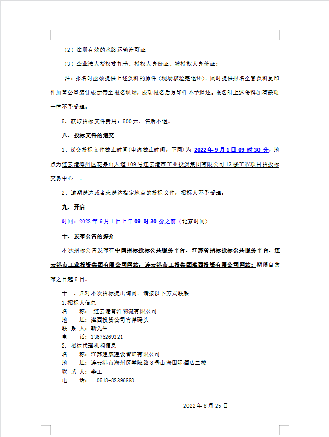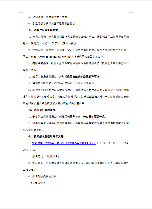 連云港宵洋物流有限公司船舶運輸服務(wù)業(yè)務(wù)招聘合格供應(yīng)商招標(biāo)(二次公告)