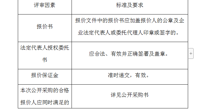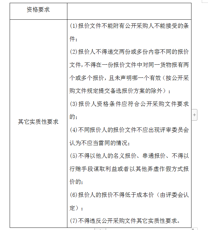 2、評審委員會將根據(jù)以下標(biāo)準(zhǔn)對各報價人進行初步評審,有一項不符合要求的,作否決報價處理,不進入詳細評審。