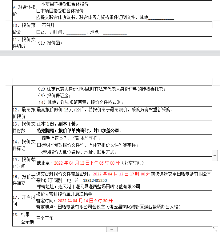 報(bào)價(jià)保證金接收人:連云港市工投集團(tuán)日曬制鹽有限公司。