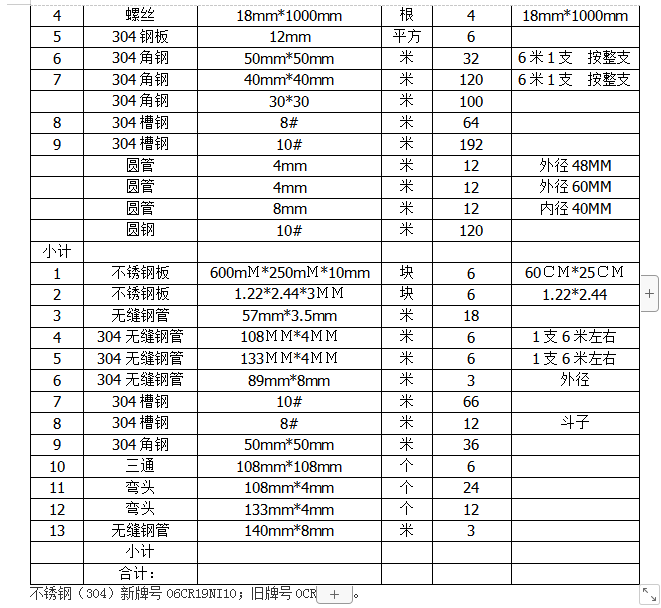 不銹鋼(304)采購項(xiàng)目