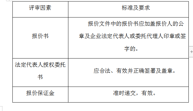 2、評審委員會將根據(jù)以下標(biāo)準(zhǔn)對各報(bào)價(jià)人進(jìn)行初步評審,有一項(xiàng)不符合要求的,作否決報(bào)價(jià)處理,不進(jìn)入詳細(xì)評審。