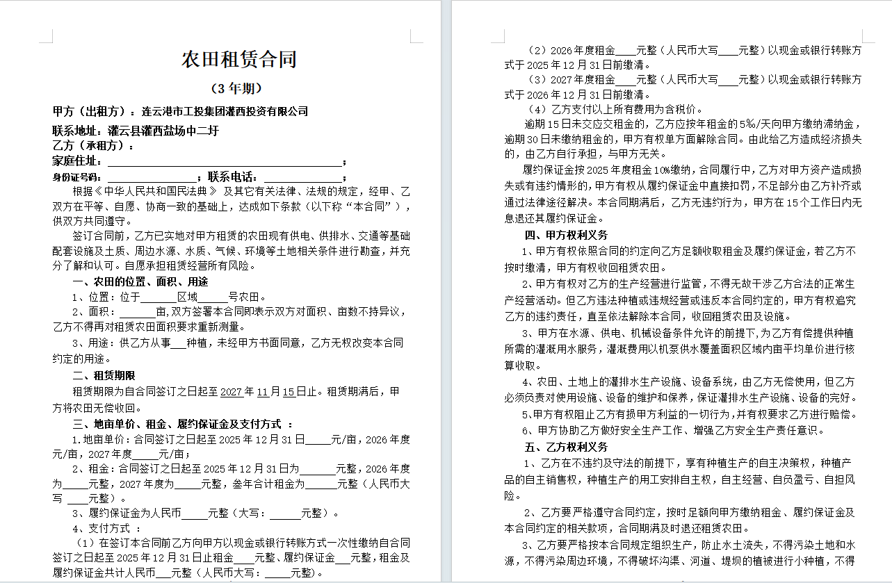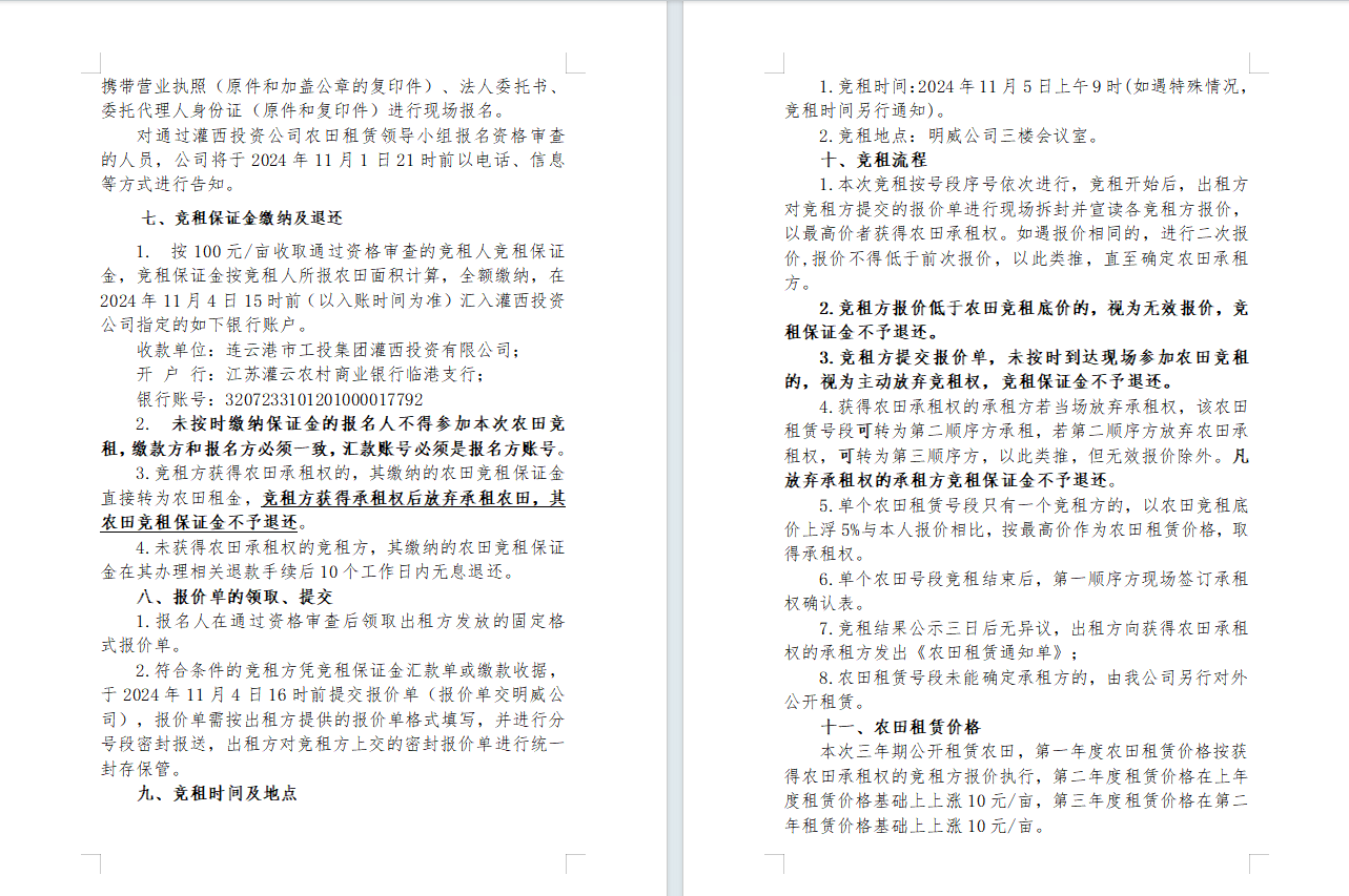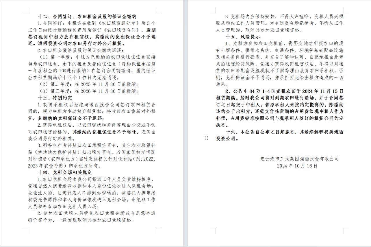 灌西投資公司2024年到期農(nóng)田公開競租公告