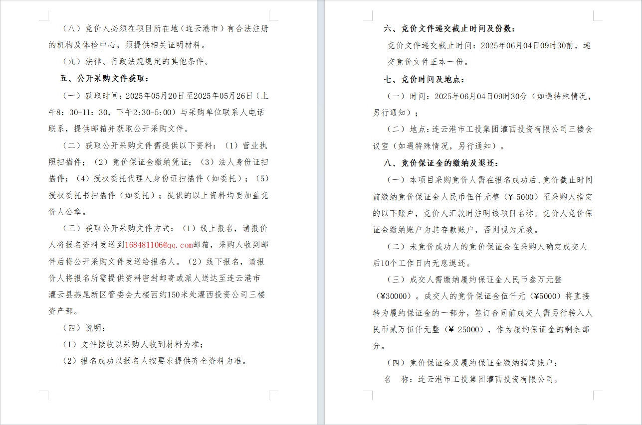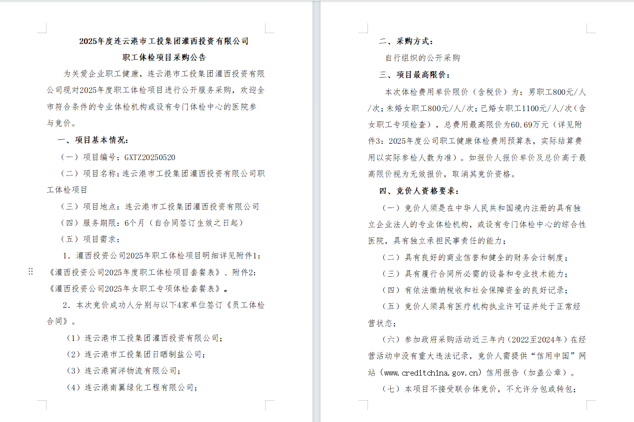 2025年度連云港市工投集團(tuán)灌西投資有限公司職工體檢項(xiàng)目采購公告