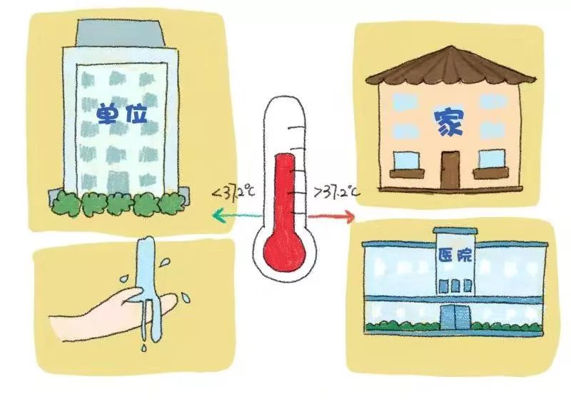 進入辦公樓前自覺接受體溫檢測,體溫正常可入樓工作,并到衛(wèi)生間洗手。若體溫超過37.2℃,請勿入樓工作,并回家觀察休息,必要時到醫(yī)院就診。