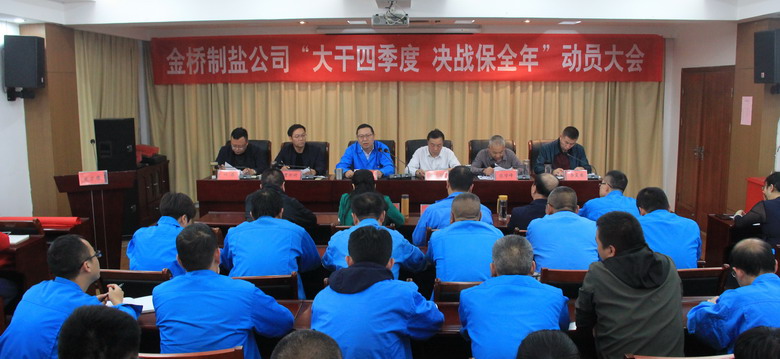 會(huì)上,副總經(jīng)理惠志明作了《2019年1-9月份經(jīng)濟(jì)活動(dòng)分析》。然后,副總經(jīng)理曹開明宣讀了《2019年大干四季度勞動(dòng)競(jìng)賽意見》。接著,董事長(zhǎng)、黨委書記、總經(jīng)理朱桂玉作了動(dòng)員講話。最后,加工鹽車間、包裝鹽車間、品種鹽分公司進(jìn)行表態(tài)發(fā)言。