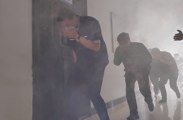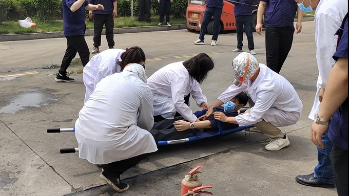 演練分為火災(zāi)應(yīng)急疏散、火災(zāi)應(yīng)急救援、有限空間應(yīng)急救援三個部分展開。在火災(zāi)應(yīng)急疏散演練中,設(shè)定三樓會議室為模擬火災(zāi)現(xiàn)場,人員2分鐘內(nèi)從指定逃生路線規(guī)范、有序、迅速撤離到了安全地帶;火災(zāi)事故應(yīng)急救援和有限空間應(yīng)急救援分別模擬紙箱庫著火及地龍有害氣體窒息,分信息報告、啟動應(yīng)急響應(yīng)、現(xiàn)場警戒、醫(yī)療救護(hù)、事故搶險等各處置環(huán)節(jié),整個演練緊張有序,過程流暢,達(dá)到檢驗應(yīng)急預(yù)案的可行性和提高應(yīng)急救援人員的應(yīng)急處置能力的效果,為完善我公司應(yīng)急預(yù)案提供實(shí)踐依據(jù)。