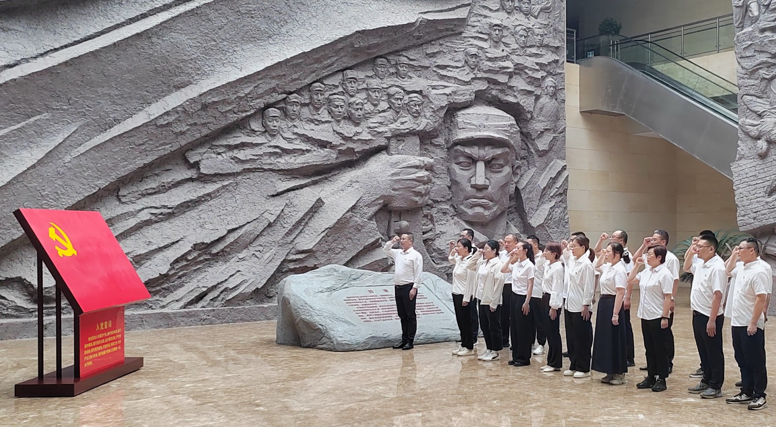 在連云港市革命博物館莊嚴(yán)肅穆的展廳內(nèi),大家認(rèn)真聆聽講解員講述連云港地區(qū)的革命斗爭史。一件件珍貴的歷史文物、一幅幅生動的歷史照片,再現(xiàn)了革命先烈們?yōu)槊褡褰夥攀聵I(yè)英勇奮斗的光輝歷程。在革命烈士浮雕前,全體黨員整齊列隊,重溫入黨誓詞,強(qiáng)化政治信仰,增強(qiáng)責(zé)任擔(dān)當(dāng)。