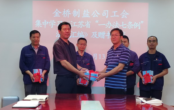 為落實(shí)市總及集團(tuán)工會(huì)相關(guān)要求, 9月13日,我公司工會(huì)舉辦集中學(xué)習(xí)《江蘇省“一辦法七條例”法規(guī)匯編》活動(dòng)及贈(zèng)書(shū)儀式。公司工會(huì)負(fù)責(zé)人,各分會(huì)、人資部門、安全部門負(fù)責(zé)人,部分職工代表參加。