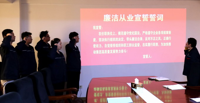 會議傳達(dá)了集團(tuán)紀(jì)委《關(guān)于扎實開展年輕干部“廉政教育月”活動的通知》文件精神,簽訂了《廉潔承諾書》、發(fā)放了《家庭助廉倡議書》和進(jìn)行廉潔從業(yè)宣誓。