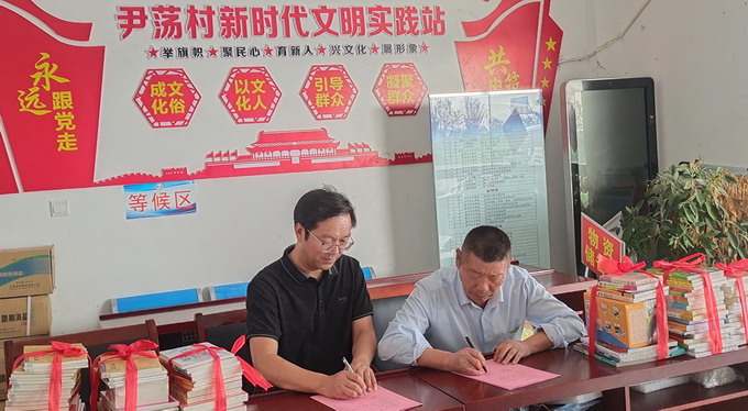 公司黨委副書記、紀委書記、工會主席曹開明,灌南縣北陳集鎮(zhèn)尹蕩村黨總支書記孫克玉代表共建雙方續(xù)簽共建協(xié)議;向該村贈送了名人傳記、農技推廣和文學藝術等各類圖書100余冊,向鄉(xiāng)民贈送了文明共建紀念品;參觀了該村黨員活動室、黨史室、村史陳列室,聽取了孫克玉對該村概況的介紹。