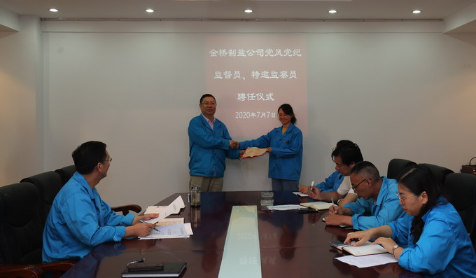 為進一步加強黨風廉政建設,拓寬監(jiān)督渠道,構建黨內監(jiān)督、行政監(jiān)察與群眾監(jiān)督相結合的監(jiān)督制約機制,7月7日,我公司在二樓會議室舉行黨風黨紀監(jiān)督員、特邀監(jiān)察員聘任儀式,黨委書記、董事長、總經理朱桂玉為盧明江、徐元等6名黨風黨紀監(jiān)督員和徐永亮、陳東等6名特邀監(jiān)察員頒發(fā)了聘書。(金宣 金紀)
