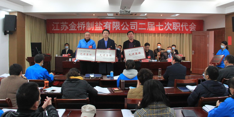 大會簽訂了《2020年度集體合同》、《2020年度經(jīng)營認標責任書》,與會代表認真審議通過了總經(jīng)理工作報告,通過了大會決議、有關(guān)方案和意見。加工鹽車間、包裝鹽車間、銷售部依次作了表態(tài)發(fā)言。大會表彰了第八屆“金橋杯”勞動競賽、2019年“大干四季度”勞動競賽的先進單位、先進部室、先進班組和先進個人。(金宣)
