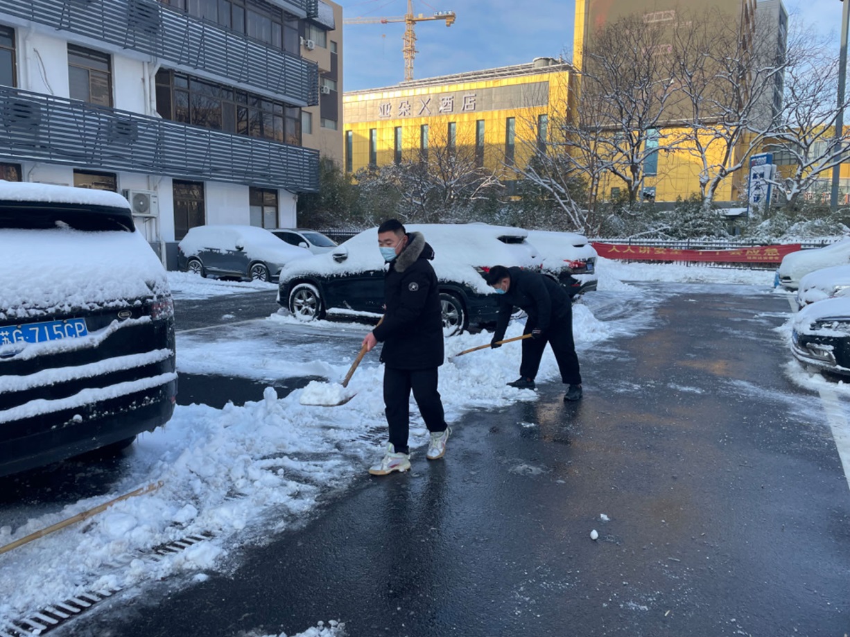 搶干會干巧勁足。“這塊用雪鏟推就行”“那邊不需要掃,直接撒融雪劑”“換這個,更省力”,掃雪現(xiàn)場,大家齊心協(xié)力,組織有序,紛紛施展出自己的“巧勁”。有的員工用鐵鍬鏟雪,有的用掃帚清掃,還有的負責運輸積雪。一時間,院內(nèi)響起“叮叮當當”了鏟雪聲、掃雪聲,匯成了一首團結(jié)協(xié)作、搶干會干的的贊歌。
