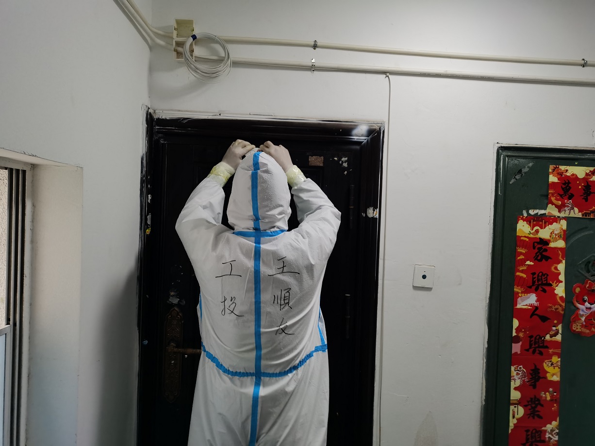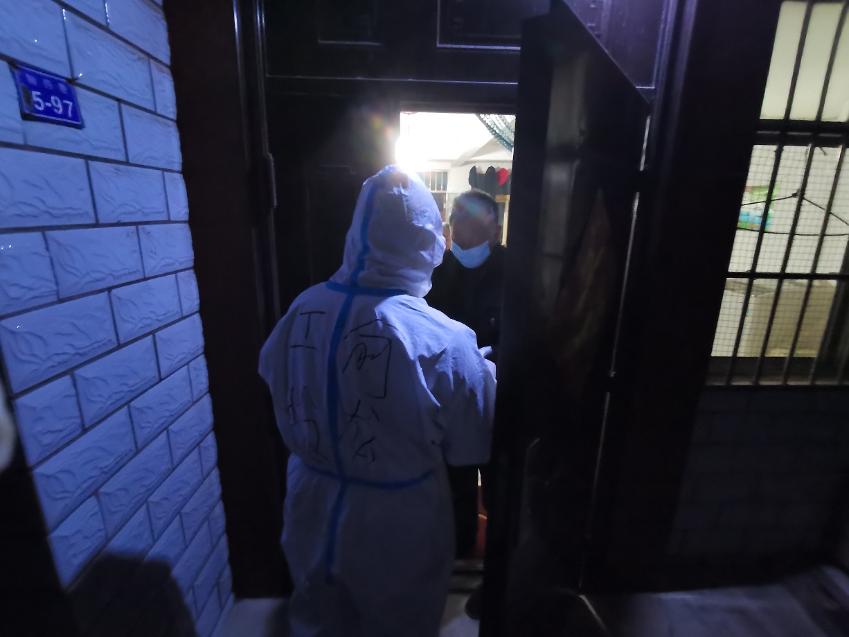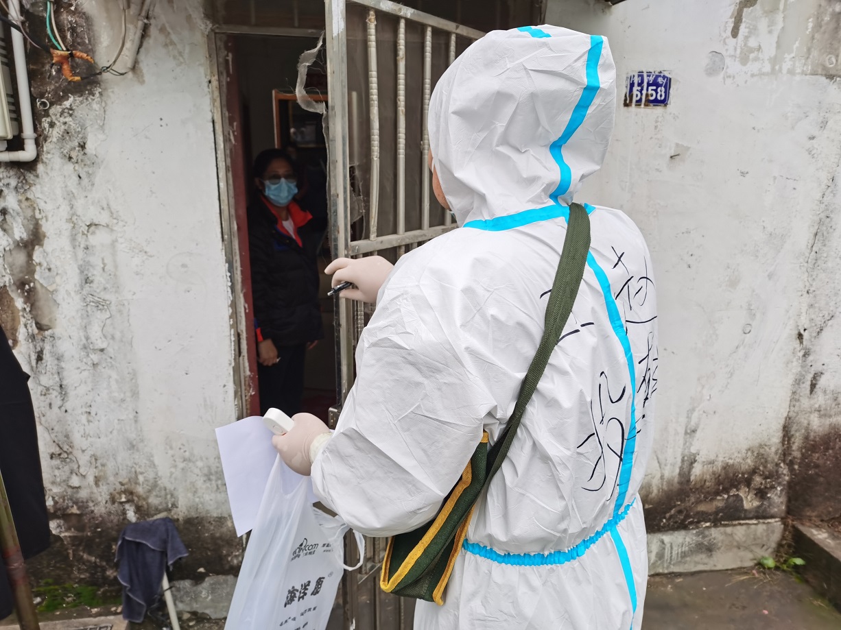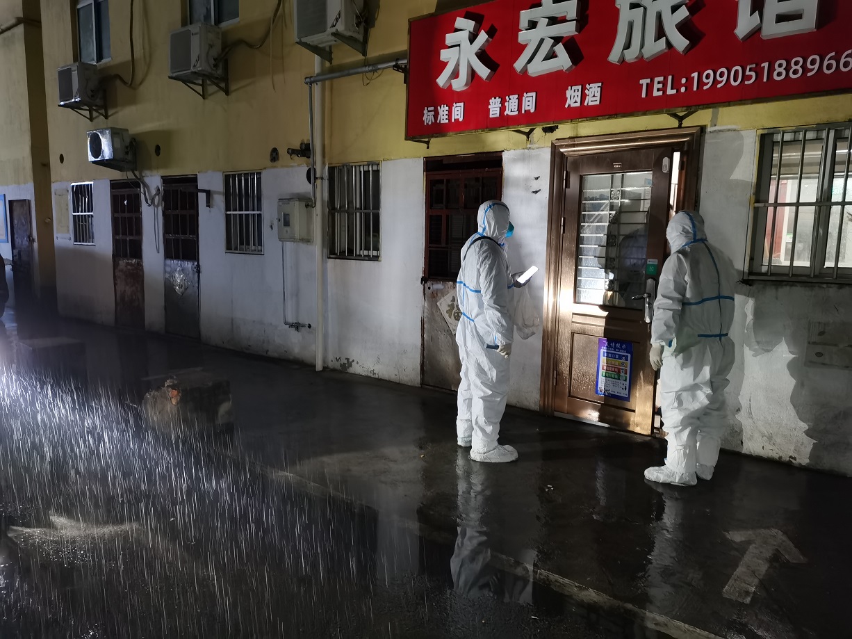 “終于完成任務了”,看著已被雨水打濕的安裝名單,工投金融板塊的三名志愿者長長地舒了一口氣。志愿服務隊進駐當天就按照社區(qū)的統(tǒng)一安排,立即開展了門磁安裝門磁等一線工作。由于新橋社區(qū)是本輪疫情最早的“爆發(fā)點”,且轄區(qū)內(nèi)多為老舊小區(qū),街巷縱橫、門牌號排列混雜,群租、合租情況普遍,外來務工人員較多,給安裝工作造成了較大難度,恰巧當天夜里下起了大雨,雨水遮擋視線,讓原本復雜的工作更添新的困難。志愿者一邊電話聯(lián)系,一邊用手電查找街邊的門牌,經(jīng)過3個半小時的摸排,終于完成了全部的安裝任務。