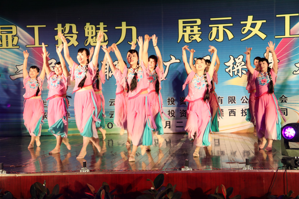 | 5月27日,主題為“彰顯工投魅力展示女工風采”的2019連云港市工投集團有限公司第二屆女職工廣場操舞大賽落下帷幕。由資產(chǎn)管理公司12名女同志組成的健身操代表隊,憑借舞蹈《共筑中國夢》、《小親圪蛋》榮獲大賽三等獎。 本次比賽是由集團公司工會主辦,灌西投資公司工會承辦,比賽場地位于灌云縣臨港產(chǎn)業(yè)園區(qū)管委會會堂。來自集團公司各權屬單位共13支隊伍參加比賽。上午9時30分,比賽正式開始。伴隨著歡快悠揚的音樂,催人奮進、活力昂揚的節(jié)目輪番上陣,各代表隊以飽滿的熱情、整齊的隊列、優(yōu)美的舞姿,展現(xiàn)了廣大群眾多姿多彩的文體生活和良好的精神面貌,給評委、觀眾留下了深刻的印象,充分展示了健身操、健身舞的柔美與動感。 通過本次健身操比賽這種積極、向上、健康、快樂的方式,向群眾展示工投女職工在各行各業(yè)努力拼搏,不斷追求美好生活、幸福生活的熱情和信心。