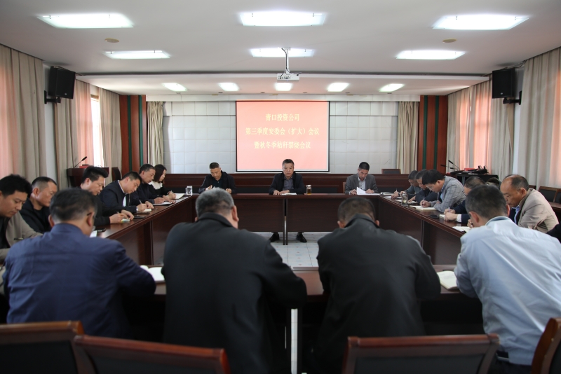 10月23日下午,青口投資公司召開三季度安委會(huì)(擴(kuò)大)會(huì)議暨秸稈禁燒會(huì)議。公司黨委書記、董事長、總經(jīng)理史祥平,副總經(jīng)理?xiàng)钋嗨桑鲉挝回?fù)責(zé)人、安全員以及安委會(huì)成員參加會(huì)議。