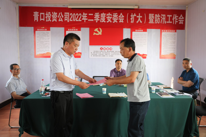 演練結(jié)束后,工作會在承擔(dān)主要防汛任務(wù)的三洋分場召開。會上,生產(chǎn)安全部匯報二季度安全工作情況,副總經(jīng)理許太冬傳達(dá)《關(guān)于深刻汲取近期事故教訓(xùn)采取嚴(yán)厲措施堅決遏制事故多發(fā)勢頭的通知》,副總經(jīng)理楊守明布置公司安全工作及防汛工作,各單位遞交2022年度防汛工作責(zé)任書。