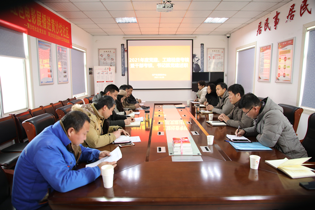 12月27日-31日,公司黨委副書記、工會主席梁永率考核組一行先后深入機關以及各基層單位,扎實開展2021年支部書記抓黨建工作述職、干部述職測評以及黨建、工建檢查測評四項考核工作,機關以及所在基層單位全體管理人員、職工代表參加了會議。