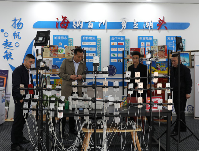 ? ? ? ?調(diào)研過(guò)程中,副總經(jīng)理許太冬詳細(xì)聽(tīng)取了海前村電商示范村網(wǎng)紅直播運(yùn)行模式及相關(guān)配套設(shè)施建設(shè)情況,參觀了電商商品展銷(xiāo)廳、網(wǎng)紅直播室、后臺(tái)剪切室等電商運(yùn)營(yíng)工作室。