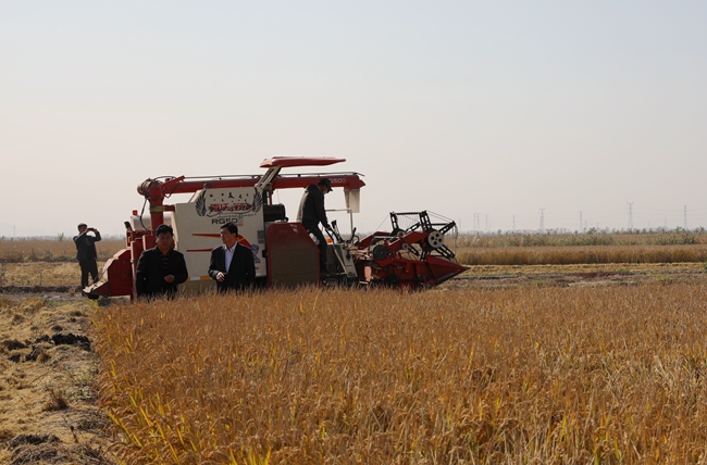 11月4日上午,晴空萬里,在喜慶的鞭炮聲和收割機的轟鳴聲中,公司萬畝水稻正式開鐮,一年一度的收割任務全面展開。黨委書記、董事長胡傳法、副總經(jīng)理周緒祥到場指導。