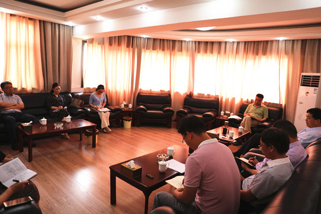 8月8日上午,開發(fā)區(qū)社會事業(yè)局局長蘇月虹、猴嘴街道黨工委副書記、辦事處主任趙士安一行4人到我公司專題調(diào)研青口鹽場社會職能移交事務(wù)。公司董事長、黨委書記胡傳法,總經(jīng)理史祥平陪同調(diào)研。