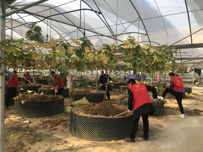 10月30日上午,青口投資公司團(tuán)委組織團(tuán)員青年前往育秧大棚參加志愿服務(wù),對(duì)200株限根葡萄施用有機(jī)肥,為來(lái)年掛果豐收蓄力。 (團(tuán)委)