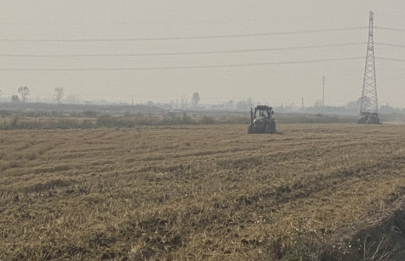 近日,在大新農(nóng)場(chǎng)的農(nóng)田里,機(jī)聲隆隆,幾臺(tái)大型農(nóng)機(jī)拖著旋轉(zhuǎn)的滾輪正在作業(yè),切碎土塊,并將埋在地表下的水稻根茬切碎,疏松土壤,為接下來的冬小麥播種做準(zhǔn)備。(王璐)