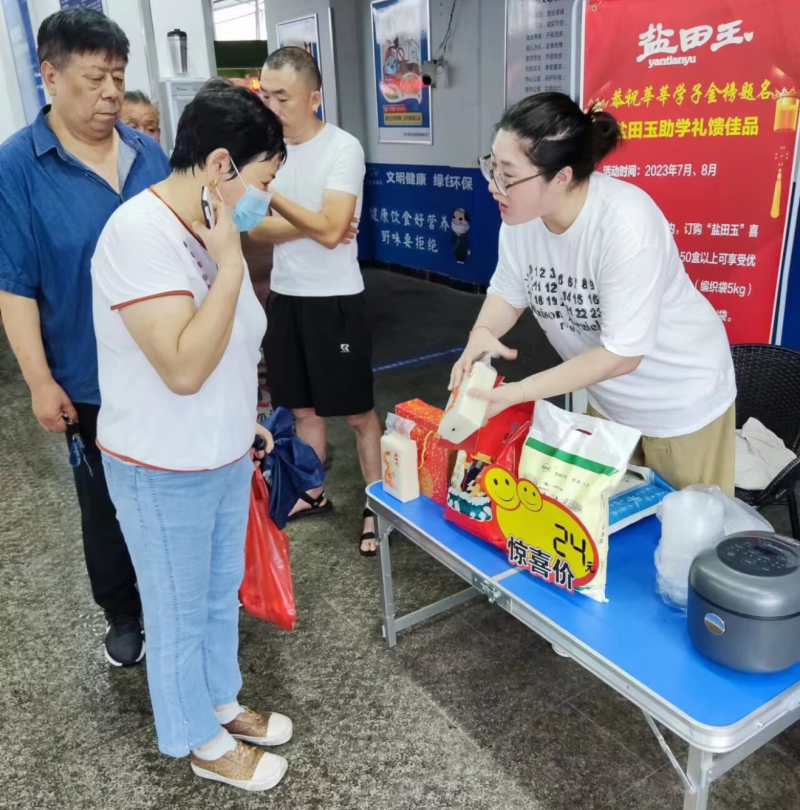 ? ? ? ?近日,米業(yè)營銷中心銷售團隊抓住中、高考升學宴契機,在巨龍路農(nóng)貿(mào)市場門口開展現(xiàn)場推介活動,向往來市民細心講解鹽田玉大米,進一步加大宣傳鹽田玉糧油直營店的力度,獲得更多消費者的認可。(田鐘超)