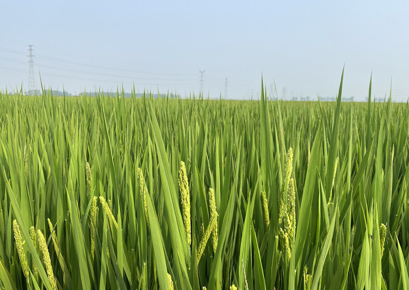 近日,大新農(nóng)場1000余畝自種自營水稻示范區(qū)水稻長勢喜人,田野上稻花飄香。正值水稻抽穗揚花期,農(nóng)場管理人員根據(jù)重要農(nóng)時到地頭查看苗情,目前抽穗率達到百分之六十,預計中旬抽穗完成。(王 璐)