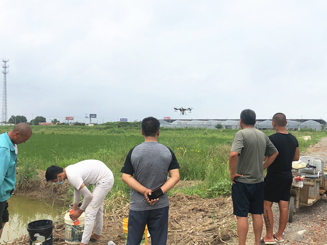據(jù)生態(tài)種養(yǎng)中心嚴(yán)鑫介紹,現(xiàn)在正值多雨高濕天氣,水稻易發(fā)稻瘟病、稿飛虱、稻縱卷葉螟等病蟲害,為了做好水稻的病蟲害高效防治及除草工作,需要用無(wú)人機(jī)在稻地進(jìn)行打藥作業(yè)。