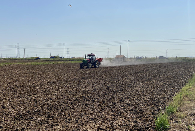 近日,大新農(nóng)場(chǎng)農(nóng)田育秧工作已全部完成,為搶抓農(nóng)時(shí)提高效率,農(nóng)場(chǎng)自營(yíng)條田一分場(chǎng)三隊(duì)進(jìn)行機(jī)械化施肥。采用機(jī)械化施肥代替?zhèn)鹘y(tǒng)人工施肥,平均每天可施肥近1000畝,比傳統(tǒng)人工施肥效率更高,成本也更節(jié)省。(葛蘇)