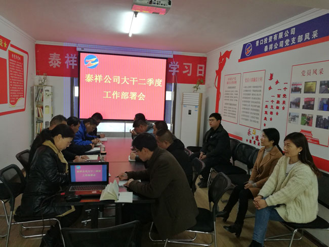 4月8日下午 , 泰祥公司召開大干二季度工作部署會(huì)議。會(huì)上董事長以完成工程量和物業(yè)費(fèi)收取為二季度工作重點(diǎn),工程負(fù)責(zé)人王璐對二季度工程施工進(jìn)行了安排,爭取二季度完成全年工程量的 50%;物業(yè)項(xiàng)目經(jīng)理汪汝光提出四種方式想方設(shè)法提高物業(yè)費(fèi)的收取率。進(jìn)一步加強(qiáng)安全隱患排查,杜絕事故發(fā)生。泰祥員工分工協(xié)作,確保大干二季度活動(dòng)取得預(yù)期效果。 ( 趙萌萌 )