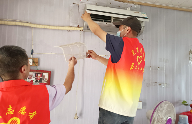 在困難老人家中,黨員志愿服務(wù)隊(duì)力所能及地幫助他們進(jìn)行衛(wèi)生打掃、電器維護(hù)等服務(wù),用實(shí)際行動將溫暖送到群眾心坎上。