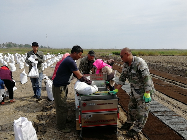 地頭播地龍育秧是最近兩年引進的機械化育秧方式,通過覆基質(zhì)、播種、再覆基質(zhì),一次性完成播盤任務(wù),條田工之間自愿組合合作購買播種機,互相配合共同完成育秧作業(yè),大幅節(jié)約了成本、人工,減少了運輸、擺盤期間損苗現(xiàn)象;大棚塑盤暗化育秧,條田管理工互幫互助,自行組織運輸車輛轉(zhuǎn)運秧苗至田頭,將轉(zhuǎn)運時間由一天半壓縮至半天就能完成,并順帶空盤回大棚,不僅減少了轉(zhuǎn)運時間,大大降低了運輸成本,又促進了職工之間團結(jié)互助關(guān)系。