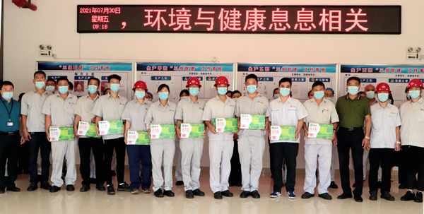 劉承志主席為生產(chǎn)一線員工送來牛奶、綠豆、白糖、大米等防暑降溫慰問品,細(xì)心叮囑要認(rèn)真做好防暑降溫和疫情防控工作,確保平安度過夏天。(神特宣)