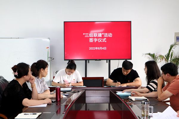 為了深入推進(jìn)“三組聯(lián)建”工作機(jī)制,8月4日下午,公司舉行“三組聯(lián)建”活動(dòng)簽字儀式,黨小組、生產(chǎn)班組、工會(huì)小組的組長參加活動(dòng)?;顒?dòng)由公司黨支部副書記袁忠主持。