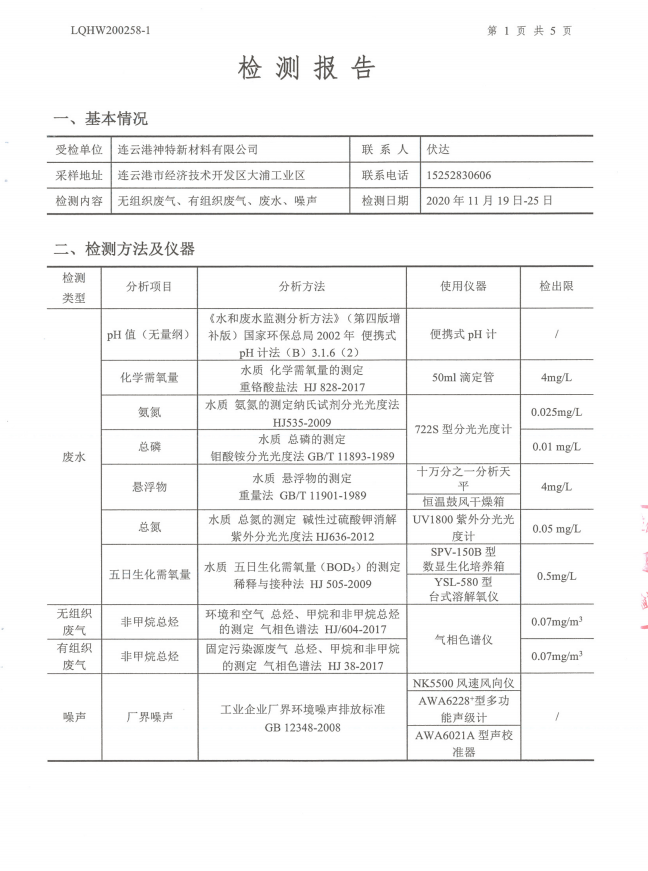神特公司檢測報告公示