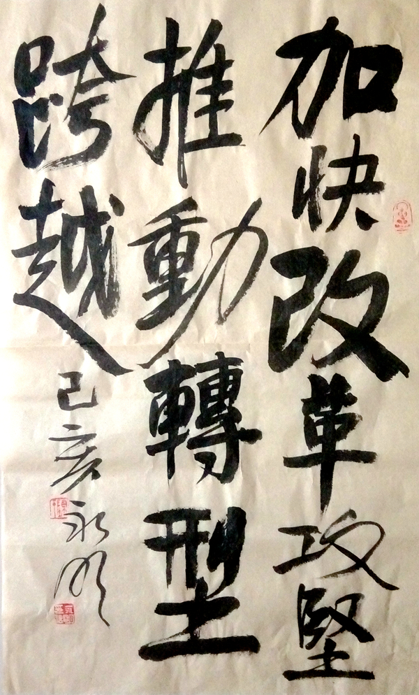 職工陳永明書法作品《加快改革攻堅(jiān),推動轉(zhuǎn)型跨越》