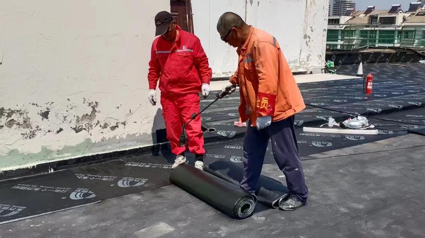 在昌圩湖大酒店樓頂防水工程施工現(xiàn)場,因屋面漏水嚴(yán)重影響酒店日常經(jīng)營。為了趕在雨季來臨之前完成全屋面防水工程,節(jié)日期間,有著“臺北防水第一人”稱號的丁祥生班長帶領(lǐng)班組成員連日奮戰(zhàn)在施工現(xiàn)場。隨著噴槍烘烤著雨虹防水卷材,一米米的鋪設(shè)前進(jìn)不斷縮短著距離。