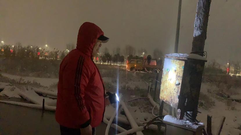 在冰天雪地的先鋒鈣液灘上有一抹亮麗的紅色,他就是鈣液班長程輝,不懼冬日嚴(yán)寒,在風(fēng)雪中堅守崗位兩天兩夜,早早的在先鋒灘上等候一輛輛改裝的除雪神器、灑水車;為他們加滿鈣液,奔赴除雪的第一線,他用實際行動傳遞寒冬里的光與熱。
