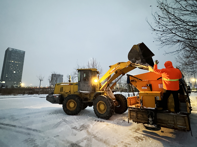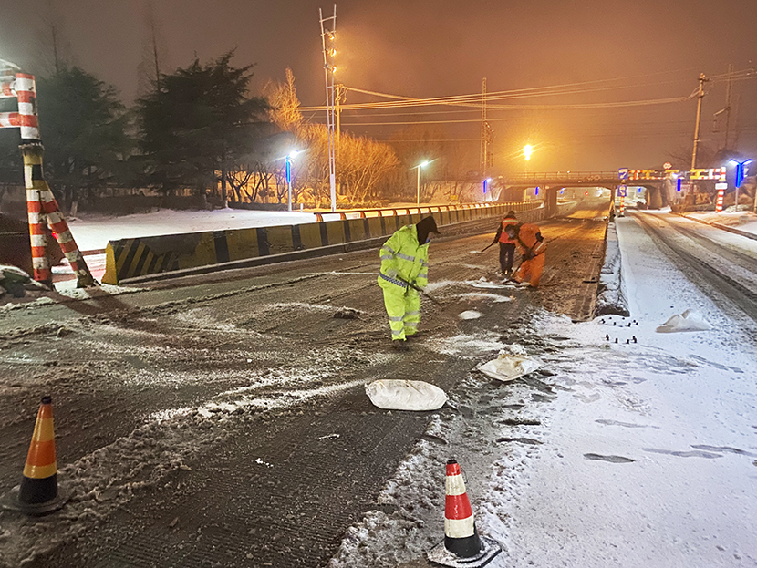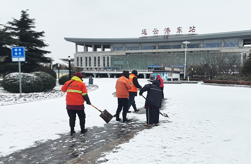 ? ? 此次掃雪除冰行動,采用人機結合方式,調(diào)派鏟雪車、裝載機等機械設備,對東方大道、黃海大道、花果山大道、242省道等主要干道人行便道、交叉路口,新海連大廈、火車站東站等重要地段的路面冰雪進行突擊清理;對各條干道的橋面及馬山立交橋、新光路下穿立交等坡度路面鋪灑氯化鈣除雪劑融化冰雪。