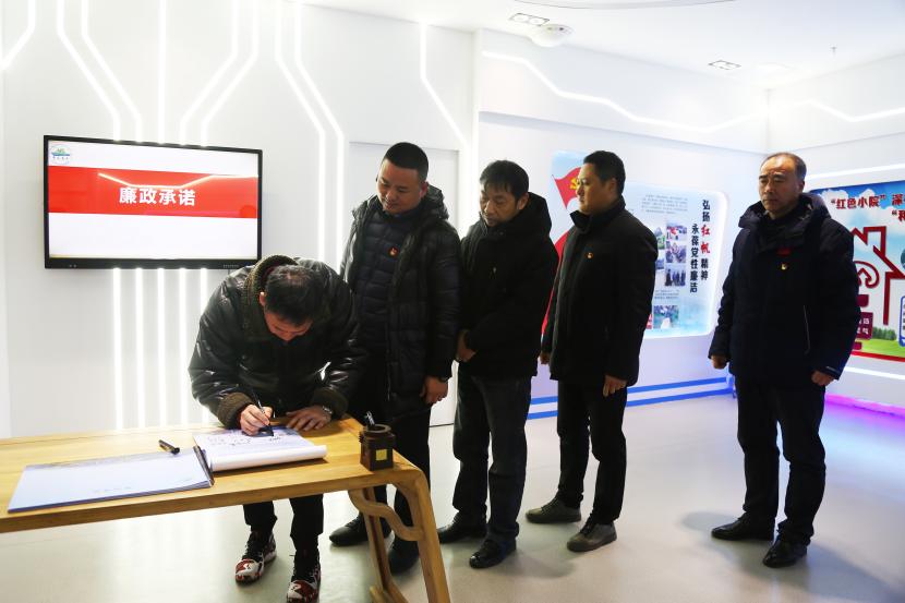各單位、項(xiàng)目部負(fù)責(zé)人在廉政教育基地現(xiàn)場(chǎng),簽訂了廉政承諾書。