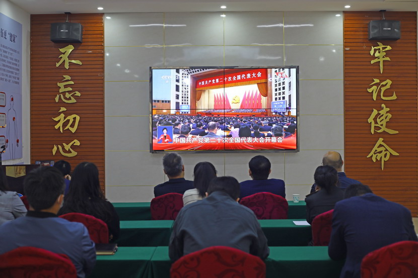 ? ? ? ??臺(tái)北投資公司廣大黨員干部群眾早早端坐在屏幕前,懷著激動(dòng)的心情,收聽收看黨的二十大開幕會(huì),認(rèn)真聆聽習(xí)近平總書記所作的報(bào)告。公司領(lǐng)導(dǎo)王德志、楊善革、張海寧、卞霄以及各部門負(fù)責(zé)人在機(jī)關(guān)廉政會(huì)堂集中收看,各基層單位廣大黨員或在支部,或通過視頻會(huì)議,或在工作崗位休息間隙,收聽收看開幕會(huì)盛況。